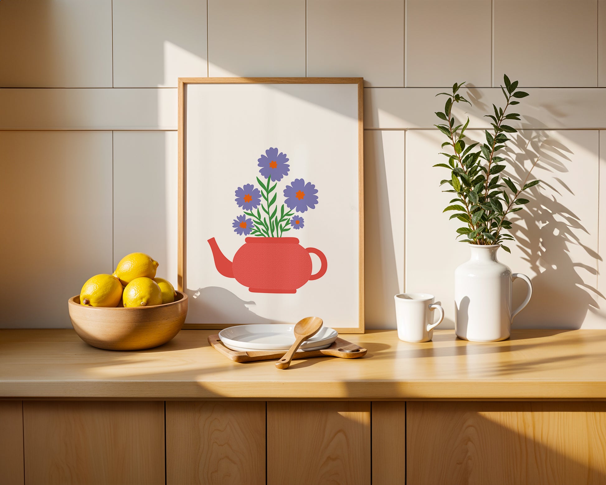 Perfect for tea lovers and those who appreciate botanical beauty, this print brings warmth and character to kitchens, dining areas, or cozy corners. Its simple yet elegant style makes it a versatile piece for modern and vintage-inspired interiors alike.